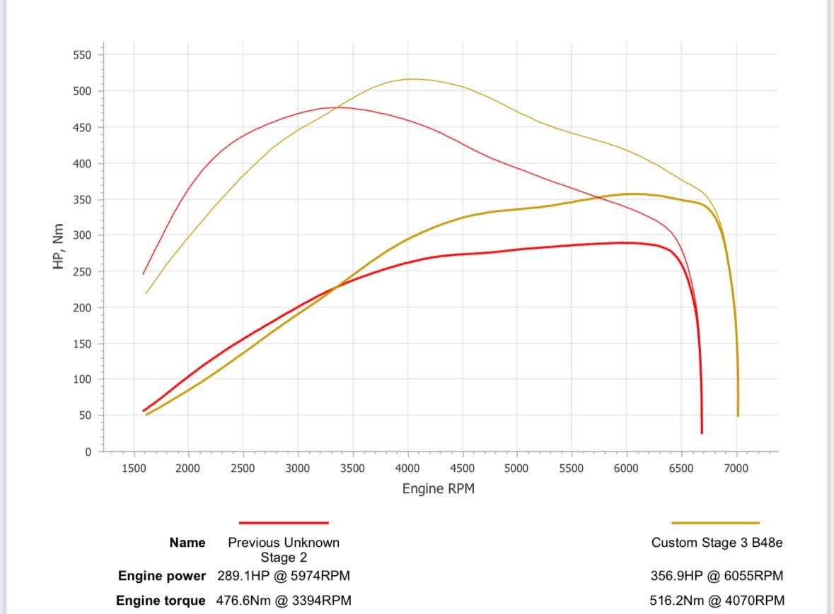 With huge chunks of power already found with the stage 1 tuning, you could be forgiven for thinking there wasn't much else to give.. Well, with an upgraded intercooler to drop the inlet temperatures, a decat (or a sports cat) to drop the exhaust gas temperature and some cooler spark plugs, there's yet more power and torque available!